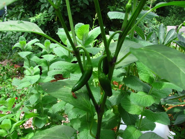 And the bell peppers, are coming along. This was the decapitated plant remember? Look - it has blooms :)